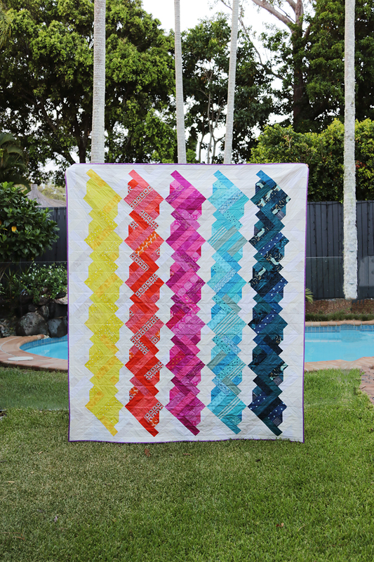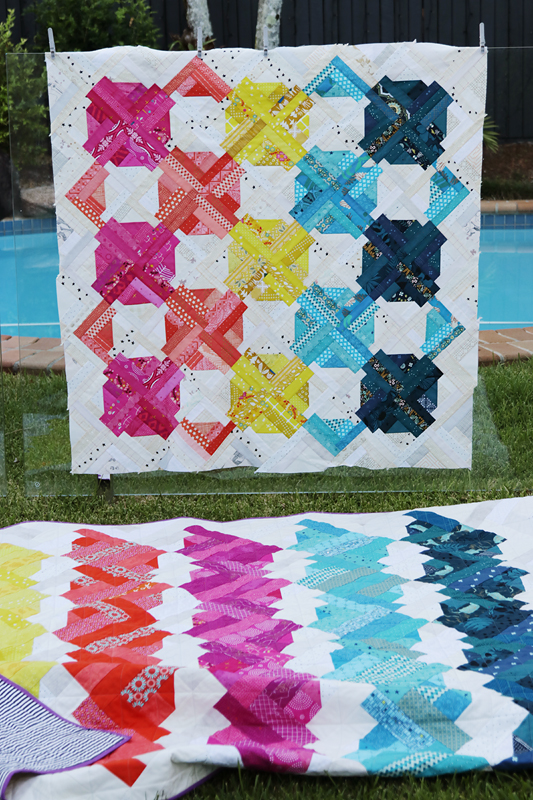 The Log Cabin Ribbons PDF Quilt Pattern will have you pulling out all your favourite scraps, F8s and FQs to create a fun modern quilt.